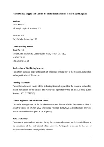 Finite Dining: Supply and Care in the Professional Kitchens of North East England.