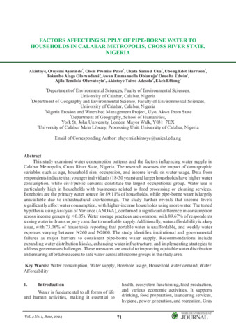 Factors Affecting Supply of Pipe-Borne Water to Households in Calabar Metropolis, Cross River State, Nigeria, 4 (1).