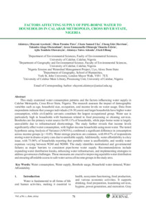 Factors Affecting Supply of Pipe-Borne Water to Households in Calabar Metropolis, Cross River State, Nigeria.