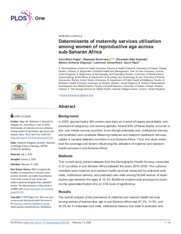 Determinants of maternity services utilisation among women of reproductive age across sub-Saharan Africa.