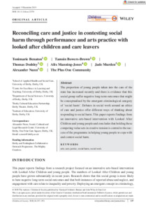 Bowers-Brown, Tamsin, Benaton, Toni-Marie, Manning Jones, Alix and Nunn, Alexander (2020) Reconciling care and justice in contesting social harm through performance and arts practice with looked after children and care leavers. Children and Society: The International Journal of Childhood and Children's Services, 34 (5). pp. 337-353.