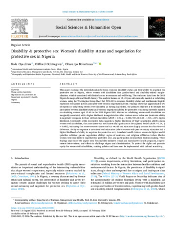 Disability & protective sex: Women's disability status and negotiation for protective sex in Nigeria.