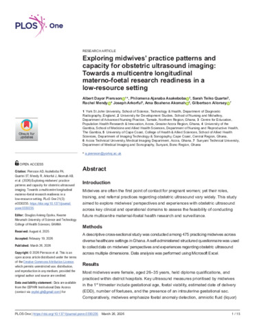 Exploring midwives’ practice patterns and capacity for obstetric ultrasound imaging: Towards a multicentre longitudinal materno-foetal research readiness in a low-resource setting.