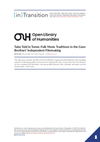 Tales Told in Tunes: Folk Music Traditions in the Coen Brothers’ Independent Filmmaking.