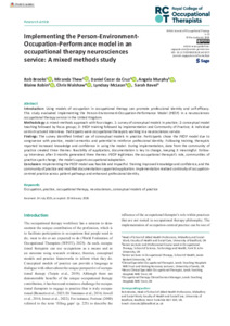 Implementing the Person-Environment-Occupation-Performance model in an occupational therapy neurosciences service: A mixed methods study.