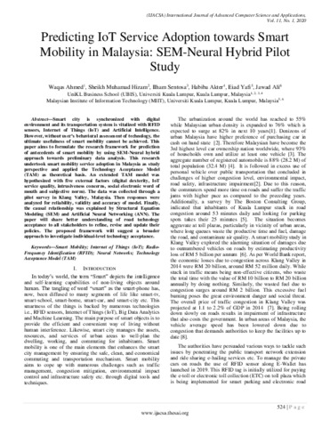 Predicting IoT Service Adoption towards Smart Mobility in Malaysia: SEM-Neural Hybrid Pilot Study.
