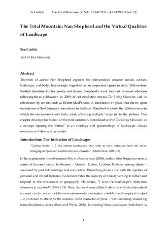 The Total Mountain: Nan Shepherd and the Virtual Qualities of Landscape.