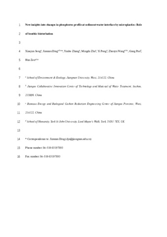 New insights into changes in phosphorus profile at sediment-water interface by microplastics: Role of benthic bioturbation.
